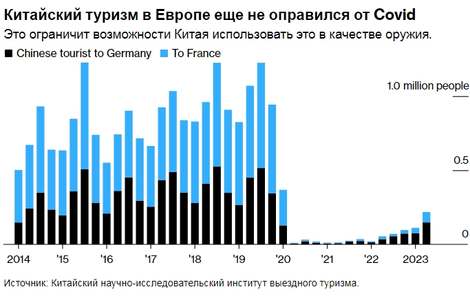 До пандемии миллионы китайских туристов ежегодно посещали Европу, но медленное восстановление после того, как Китай вновь открыл свои границы в начале этого года, означает, что это не такой мощный инструмент, каким мог бы быть в противном случае.