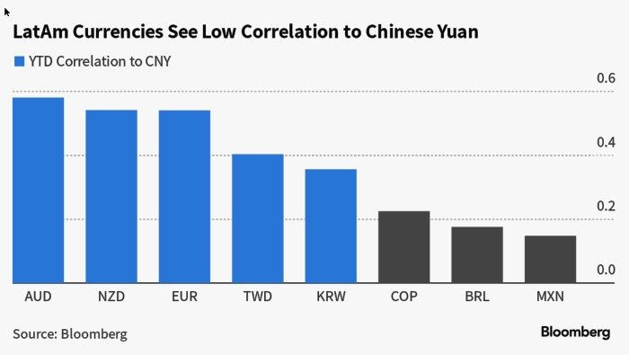 Вместо использования иен Goldman Sachs рекомендовал финансировать покупки реалов и колумбийских песо юанями. Стратеги TD также посоветовали клиентам занимать юани для покупки индийских рупий, мексиканских песо и реалов.