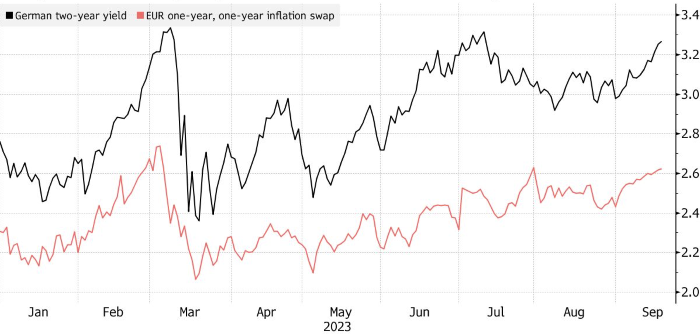 Доходность американских и европейских облигаций ползет вверх, отчасти из-за того, что инвесторы учитывают возможность дальнейшего повышения процентных ставок. В Германии, где растет озабоченность тем, что дорогие энергоносители могут нанести ущерб промышленному развитию страны, это движение было особенно резким. Доходность двухлетних облигаций подскочила до 3.2% по сравнению с 2.9% в начале августа.