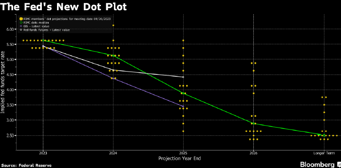 Комитет по операциям на открытом рынке ФРС США (FOMC) сохранил целевой диапазон ставки по федеральным фондам на уровне 5,25–5,50%, как и ожидалось. Медианный прогноз по ставке членов FOMC («dot plot») на 2023 год остался на уровне 5,6%, на 2024 год — вырос до 5,1%. Двенадцать членов Комитета ждут еще одного повышения ставки в текущем году, семь — сохранения ее на текущем уровне.
