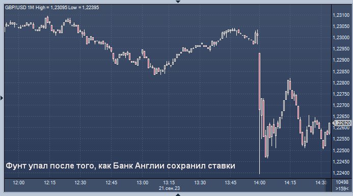 В последний раз фунт стерлингов снижался на 0,7% до $1,2258, самого низкого уровня с марта, после того как до решения Банка Англии он торговался с потерей примерно 0,4% на $1,23.