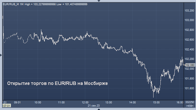 Таким образом, по официальному курсу ЦБ доллар упал к рублю на 54 копейки, евро упал к рублю на 1 рубль, а китайский юань упал к рублю на 7 копеек по сравнению с официальным курсом четверга. Объем торгов на Московской бирже к 16:06 мск четверга составил 1 545,5251 млрд рублей или 15 996,3762 долларов.