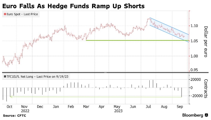 Хедж-фонды резко увеличили позиции на продажу евро почти до годового максимума, поскольку рынки сделали ставку на то, что Европейский центральный банк закончил повышать процентные ставки.