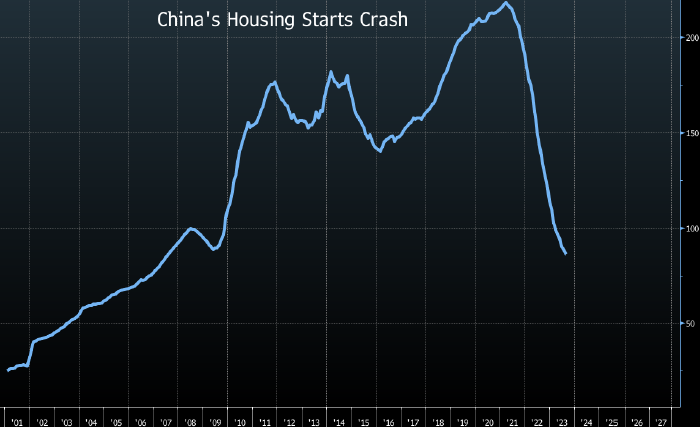 За последние 12 месяцев в Китае началось строительство 87 млн квадратных метров жилья, что на 60% ниже пикового показателя 2021 года. Данный показатель сопоставим со спадом на рынке жилья США во время мирового финансового кризиса.