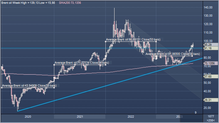 Фьючерсы на сырую нефть Brent зафиксировали свой самый большой квартальный прирост с марта 2022 года, на фоне сокращения поставок ОПЕК+ под руководством Саудовской Аравии и критически низких запасов в хранилищах американского Кушинга. В пятницу цены на американскую нефть West Texas Intermediate упали ниже 91 доллара, в значительной степени отслеживая динамику американских акций. Однако цена Brent завершила неделю, месяц и квартал уверенно выше уровня 95 долларов за баррель.