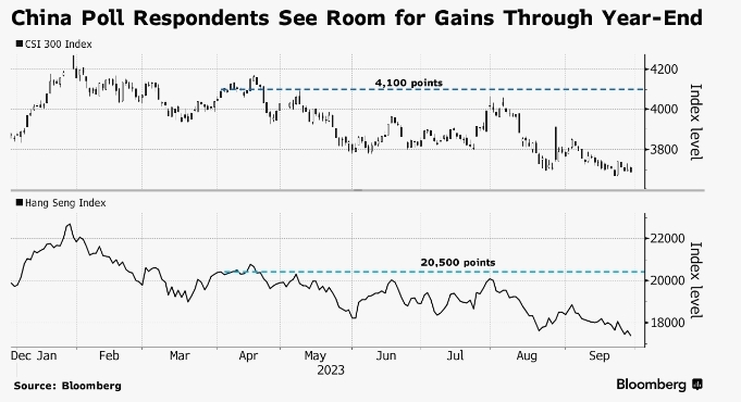 Если отбросить пессимизм в отношении сектора недвижимости, неофициальный опрос показал, что инвесторы в остальном настроены оптимистично в отношении рынка в целом, учитывая ряд недавних мер политической поддержки и недорогие оценки китайских акций. Примерно около 70% респондентов заявили, что планируют добавить длинные позиции в китайских акциях как внутри Китая, так и в Гонконге.