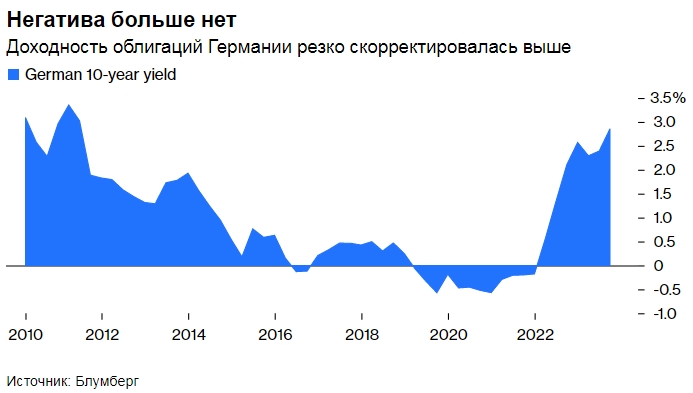 Негатива больше нет. Доходность облигаций Германии резко скорректировалась выше. Источник: Блумберг
