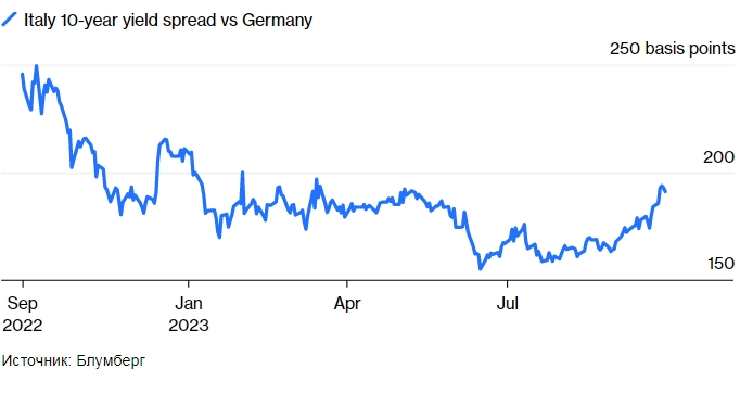 Доходность итальянских облигаций совпала с ростом казначейских облигаций США за лето, хотя французские и немецкие облигации выросли на более умеренные 50 базисных пунктов. Инвесторы обеспокоены тем, что целевые показатели бюджетного дефицита Италии были повышены одновременно с понижением оценок экономического роста. Они все еще слишком оптимистичны.