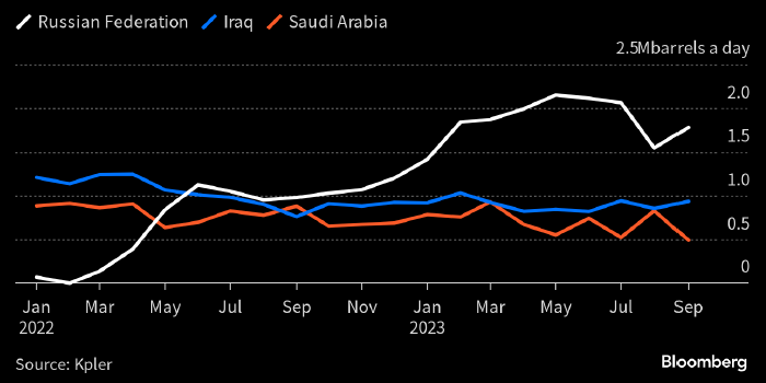 Импорт нефти в Индию из Ирака — второго крупнейшего поставщика после России — вырос в сентябре на 9,4% м/м до 0,934 млн б/д. Поставки из Саудовской Аравии — третьего крупнейшего поставщика — снизились на 41% до 0,491 млн б/д.