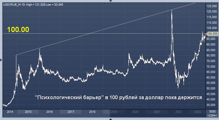 "Этот уровень (100) не является техническим сопротивлением, это важный психологический барьер", - сказал Алексей Антонов из Alor Broker. "На данный момент все говорит в пользу того, что рубль продолжает дешеветь".