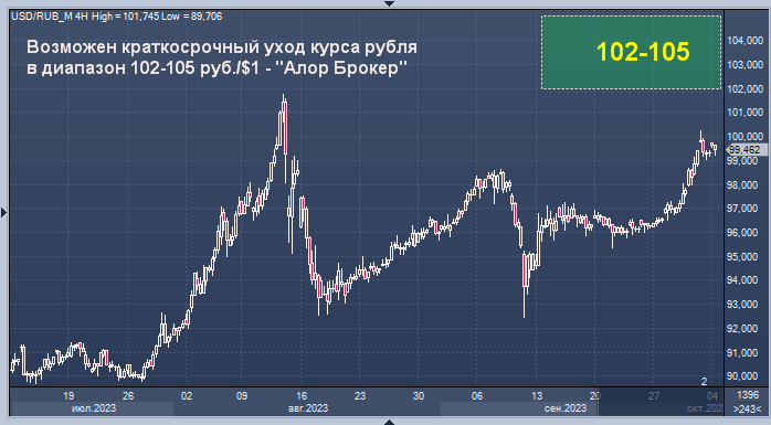 "Поэтому нас не удивит уход курса на какое-то время в район 102-105 руб./$1", - пишет руководитель направления инвестиционного консультирования "Алор Брокер" Алексей Антонов.