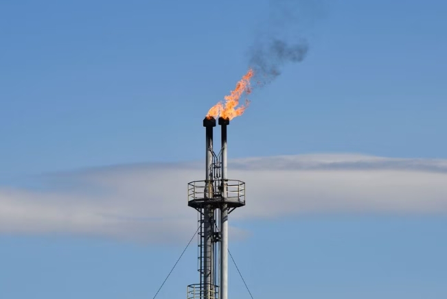 На снимке показана факельная установка на объекте энергетической компании "Роснефть" за пределами города Нефтегорск в Самарской области, Россия, 1 сентября 2023 года. REUTERS/Александр Манзюк