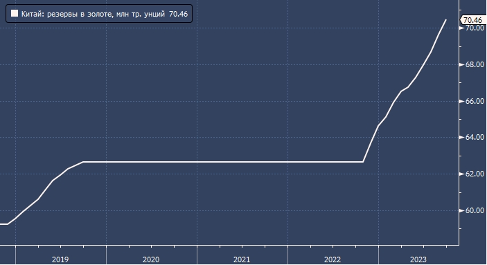 Среди мировых центральных банков Китай выделился в этом году как активный покупатель золота. Устойчивый спрос оказал поддержку драгоценному металлу, который оказался под давлением растущих процентных ставок по всему миру. Мировой спрос центральных банков в августе был значительным, хотя и ограничивался небольшим числом стран, включая Китай, говорится в октябрьском заявлении Всемирного совета по золоту.