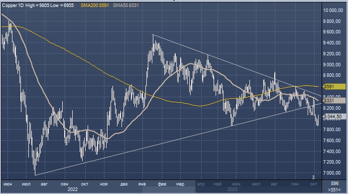 Медь завершила эту торговую неделю на уровне $8044 за метрическую тонну, что на 4% ниже уровней завершения 2022 года. При этом в начале 2023 года цены достигали 9 550,50 доллара за тонну.