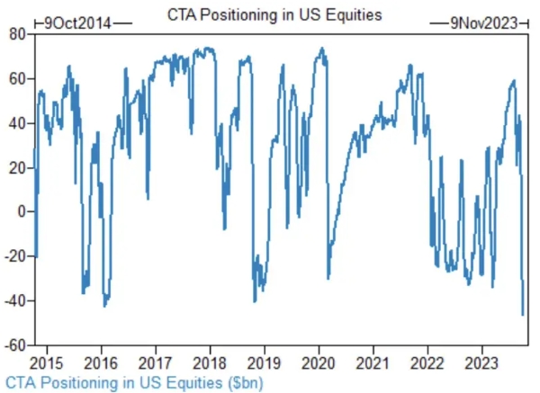 Это будет не первый раз, когда фондовый рынок достигает дна примерно в то же время, когда CTA, следующие за трендом, имели чистую медвежью позицию в отношении акций. Подобные крайности короткого позиционирования среди CTA также имели место во время дна фондового рынка в марте 2020 года во время COVID-19, а также в конце 2018 года, когда рынок продолжил сильный рост на протяжении всего 2019 года.