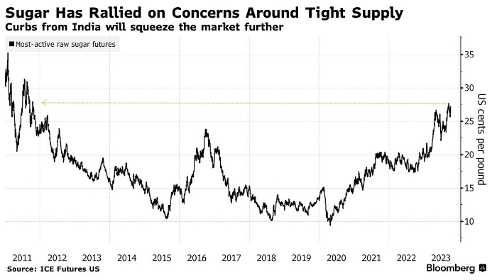 В сентябре фьючерсы на сахар-сырец выросли до 12-летнего максимума из-за опасений по поводу ограниченных поставок, несмотря на небывалый урожай в Бразилии, крупнейшем в мире производителе. По данным метеорологического управления, некоторые части индийских штатов Карнатака и Махараштра — ключевые регионы выращивания — оказались в числе самых засушливых районов в этот сезон дождей.