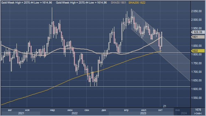 Золото вечером в пятницу, 13 октября, торговалось около 1928,07 за тройскую унцию. С начала недели цены выросли почти на 5,2%, и это лучший недельный темп роста с марта. Конфликт на Ближнем Востоке стимулировал спрос инвесторов на активы безопасной зоны.
