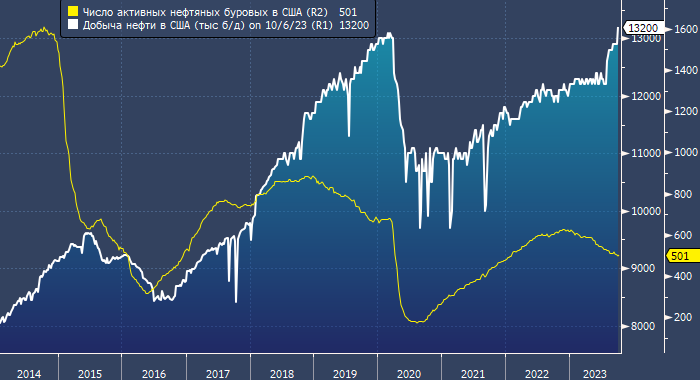 На этой неделе объем добычи нефти в США достиг нового максимального значения за всю историю на уровне 13,2 млн б/д. Предыдущий рекорд в 13,1 млн б/д был зафиксирован в феврале 2020 года, т. е. накануне пандемии Covid-19, которая парализовала мировую экономику.