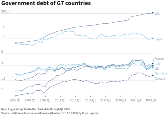 Рекордные долги, высокие процентные ставки, издержки изменения климата, расходы на здравоохранение и пенсионное обеспечение по мере старения населения и нестабильная политика усиливают опасения кризиса финансового рынка в крупных развитых экономиках.