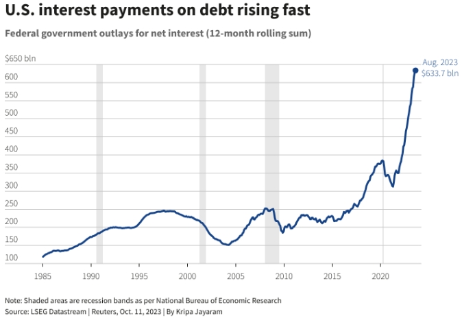 Растущие процентные платежи по высоким ставкам усиливают давление.
