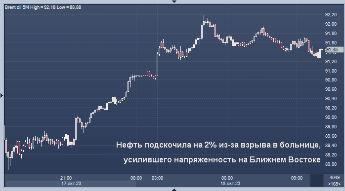 Рынки учли премии за риск после того, как сотни палестинцев были убиты в результате взрыва в городской больнице Газы во вторник, в котором израильские и палестинские официальные лица обвинили друг друга.