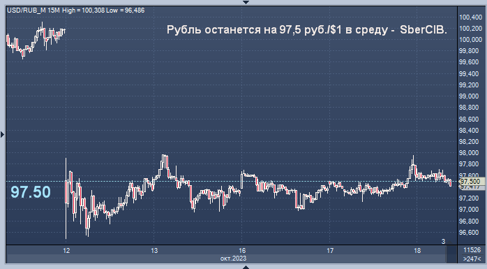 Куря рубля, вероятно, останется на уровне 97,5 руб./$1 в среду, прогнозируют в SberCIB.