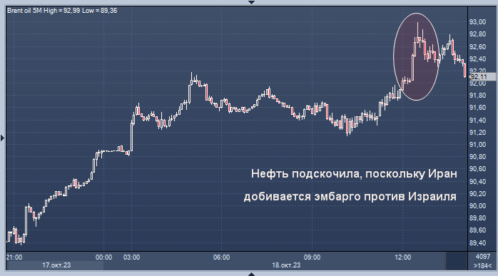 Контракты на S&P 500 потеряли 0,4%, а европейский индекс Stoxx 600 упал на 0,6%. Рост цен на нефть ускорился после того, как министр иностранных дел Ирана, крупного экспортера нефти, призвал ввести эмбарго против Израиля. Цены на золото выросли, поскольку инвесторы скупали активы-убежища.