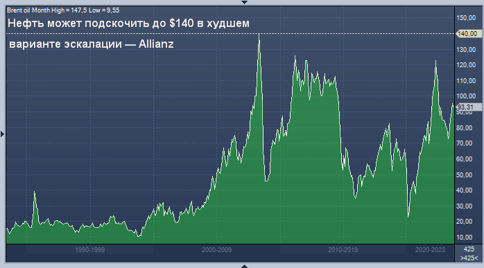 По мнению Аны Боаты, руководителя отдела экономических исследований Allianz Trade, война на Ближнем Востоке может привести к росту цен на нефть до 140 долларов за баррель и поставить мир на грань рецессии.