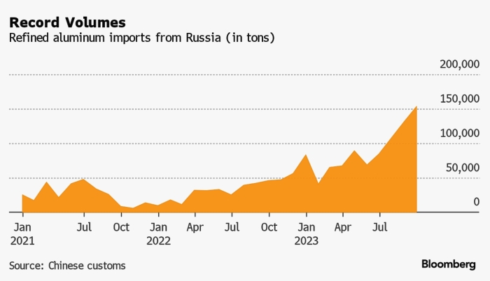 Китай продолжает получать рекордные объемы импортируемого из России алюминия. Согласно таможенным данным, закупки Китаем российского алюминия в сентябре выросли до рекордно высокого уровня третий месяц подряд. Хотя западные страны не ввели прямых санкций в отношении этого производимого в России металла, некоторые покупатели избегают покупок по этическим соображениям или потому, что финансирование и логистика стали слишком сложными.