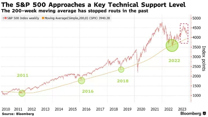 Стратег - один из наиболее звонких медвежьих голосов в отношении акций США - сказал, что теперь, когда S&P 500 преодолел отметку в 4200 пунктов, есть шанс, что он продолжит снижение, пока не достигнет 200-недельной скользящей средней на уровне 3941. Этот уровень считается долгосрочной линией поддержки, которая в прошлом останавливала обвал рынка — за исключением краха доткомов в начале 2000-х годов, финансового кризиса 2008 и 2009 годов и пандемии Covid 2020 года.По мнению Майкла Хартнетта из Bank of America Corp., индекс S&P 500 рискует упасть еще на 5% после того, как на этой неделе индекс упал ниже ключевого технического уровня.