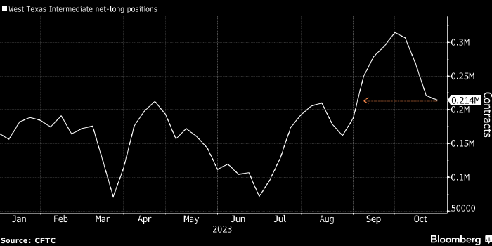 На неделе до 24 октября крупные спекулянты сократили объем чистой длинной позиции во фьючерсах и опционах на нефть WTI до двухмесячного минимума. Об этом в пятницу, 27 октября, сообщила американская Комиссия по торговле товарными фьючерсами (CFTC).