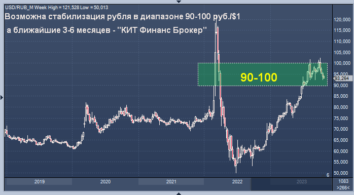 Возможна стабилизация рубля в диапазоне 90-100 руб./$1 на ближайшие 3-6 месяцев - "КИТ Финанс Брокер"