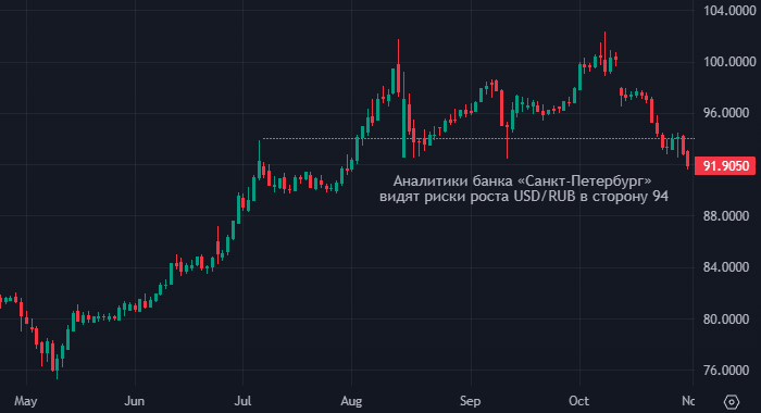 «На этом фоне риски временного роста курса пары USD/RUB в сторону 94 руб./$1 во второй половине текущей недели все же остаются», — пишут эксперты банка.