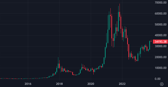 Цена биткоина интервалами 1 месяц