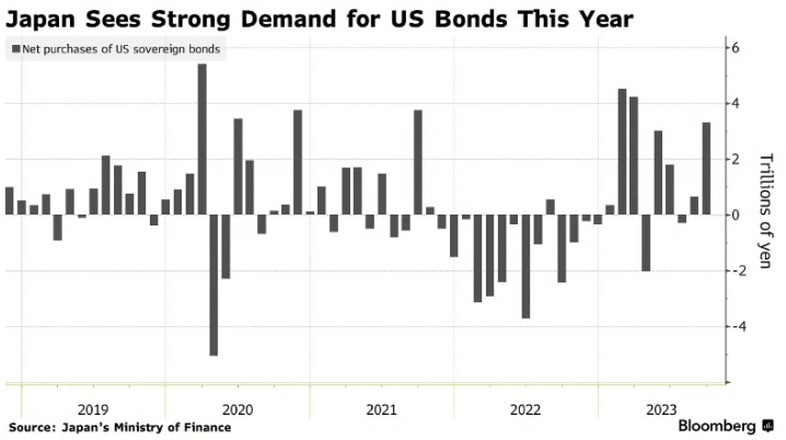 Однако последние данные показывают, что большой разрыв в доходности с США по-прежнему привлекает японских инвесторов в американский долг: они были нетто-покупателями суверенных облигаций крупнейшей экономики мира каждый месяц в 2023 году, за исключением апреля и июля.