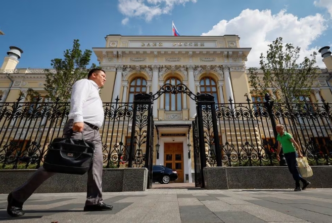 Пешеходы проходят мимо штаб-квартиры Центрального банка в Москве, Россия, 15 августа 2023 года. REUTERS/Шамиль Жуматов