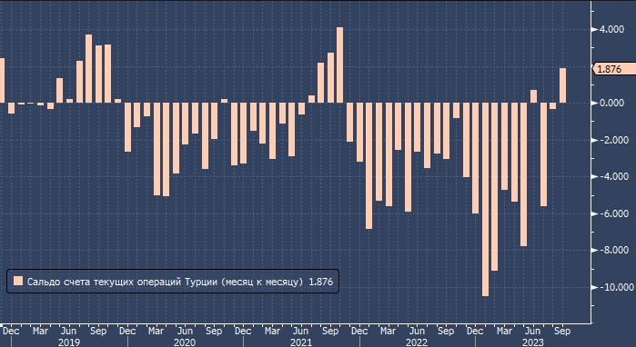 Турция зафиксировала помесячный профицит своего текущего счета, лишь второй раз с конца 2021 года. Сокращение годового торгового дефицита помогает стабилизировать внешние финансы страны.