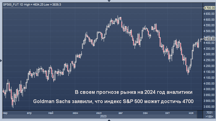 В своем прогнозе рынка на 2024 год аналитики Goldman Sachs заявили, что индекс S&P 500 может достичь 4700, что примерно на 8% выше цены закрытия в пятницу. Стратеги описывали акции с 2022 года как застрявшие в «жирном и плоском» диапазоне, а это означает, что рынки сильно колебались, но в конечном итоге оказались примерно в одном и том же месте за этот период времени.
