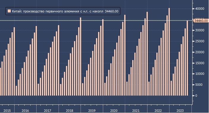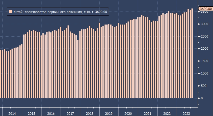 По данным Национального бюро статистики (НБС), крупнейший в мире производитель алюминия в прошлом месяце произвел 3,62 миллиона тонн первичного алюминия, что немного выше предыдущего рекорда в 3,6 миллиона тонн в августе.