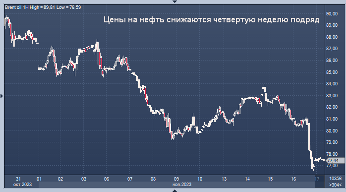 Фьючерсы на нефть марки Brent выросли на 4 цента, или на 0,1%, до 77,46 доллара за баррель в 05:29 по Гринвичу. Американская нефть марки WTI стоила 72,95 доллара, поднявшись на 5 центов, или на 0,1%. Оба сорта потеряли примерно шестую часть своей стоимости за последние четыре недели.