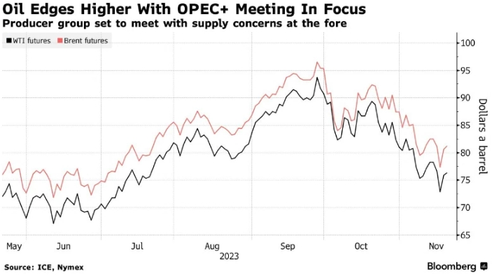 Нефть выросла после двухдневной консолидации, поскольку инвесторы ожидали встречи ОПЕК+ по впросу поставок, которая определит баланс рынка в 2024 году, а более слабый доллар США сделал сырьевые товары более привлекательными.