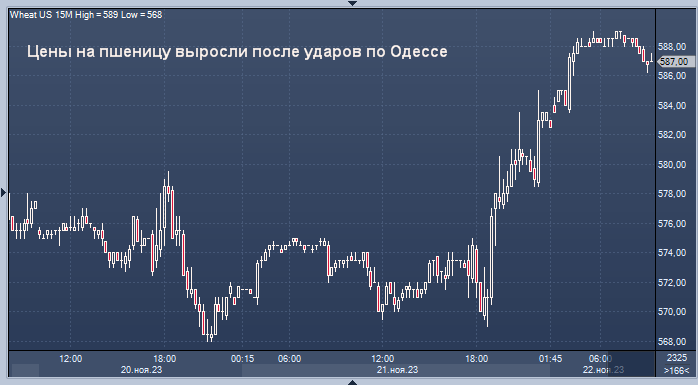 График пшеницы на бирже в Чикаго интервалами в 15 минут