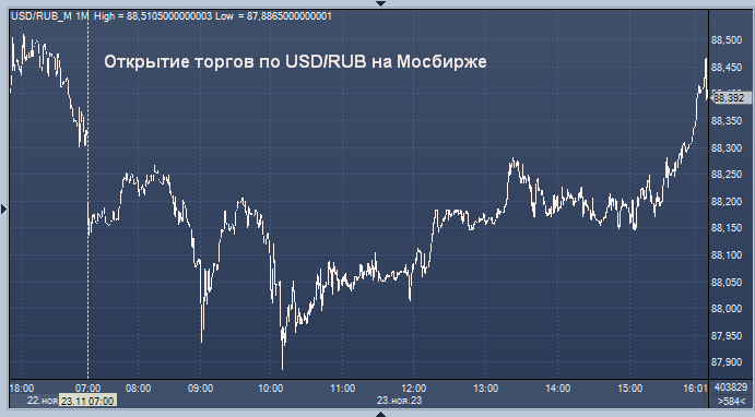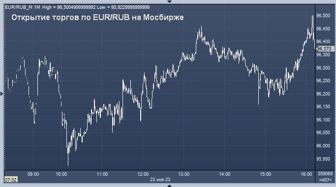 Как отмечают эксперты "Интерфакс-ЦЭА", рубль демонстрирует небольшие разнонаправленные колебания в основных парах при сниженной активности участников, так как в четверг в связи с Днем благодарения закрыты биржи США. Динамика доллара и евро на внутреннем валютном рынке повторяет колебания доллара и евро на Forex, где евро укрепляется после заметного роста доллара вечером в среду. Накануне поддержку американской валюте оказали сильные данные по национальному рынку труда, повысившие вероятность сохранения жесткой денежно-кредитной политики (ДКП) Федеральной резервной системы.