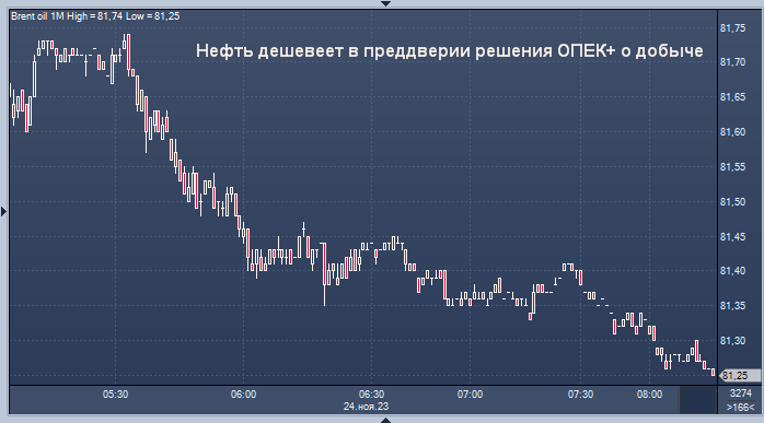 Фьючерсы на нефть марки Brent подешевели на 6 центов, или на 0,07%, до 81,36 доллара по состоянию на 04:00 по Гринвичу, после снижения на 0,7% на предыдущей сессии.