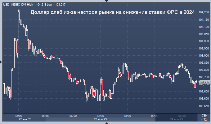 Индекс доллара, который измеряет американскую валюту к шести аналогами, снизился на 0,058% до 103,71, оставаясь вблизи двух с половиной месячного минимума в 103,17, которого он достиг ранее на этой неделе.