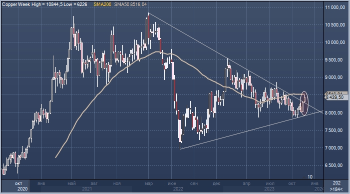 Поддержку меди оказал спрос из Китая, где, несмотря на слабость рынка недвижимости, спрос на медь со стороны отраслей «энергетического перехода» оставался сильным.