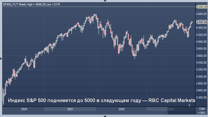 К бычьим прогнозам по фондовому рынку в следующем году присоединился RBC Capital Markets, который ожидает, что индекс S&P 500 достигнет рекордного уровня в 2024 году.