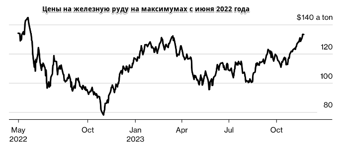 Получается, дальнейшие изменения на рынке зависят не только от того, приведут ли принимаемые Пекином стимулы к увеличению поставок железной руды, но и от того, сможет ли правительство остановить покупателей на фоне попыток перезагрузить сектор недвижимости. Citigroup Inc. ожидает, что цены вскоре достигнут $140 за тонну, после того как 15 ноября они преодолели $130 за тонну.