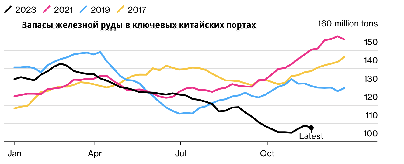 Изменение настроений сопряжено с довольно напряженной ситуацией в сфере поставок. Запасы железной руды в крупных китайских портах находятся на самом низком уровне для этого времени года с 2015 года. При этом запасы стали также меньше, чем обычно, и Citigroup отмечает на удивление быстрое сокращение в последние недели.