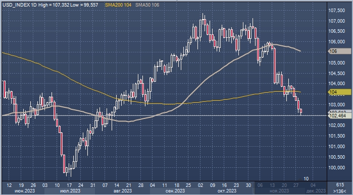Индекс доллара падает пятый день подряд, поскольку опасения по поводу рецессии и «голубиные» комментарии ФРС побудили инвесторов сделать ставку на то, что центральному банку придется прекратить самый агрессивный цикл ужесточения денежно-кредитной политики с 1980-х годов.